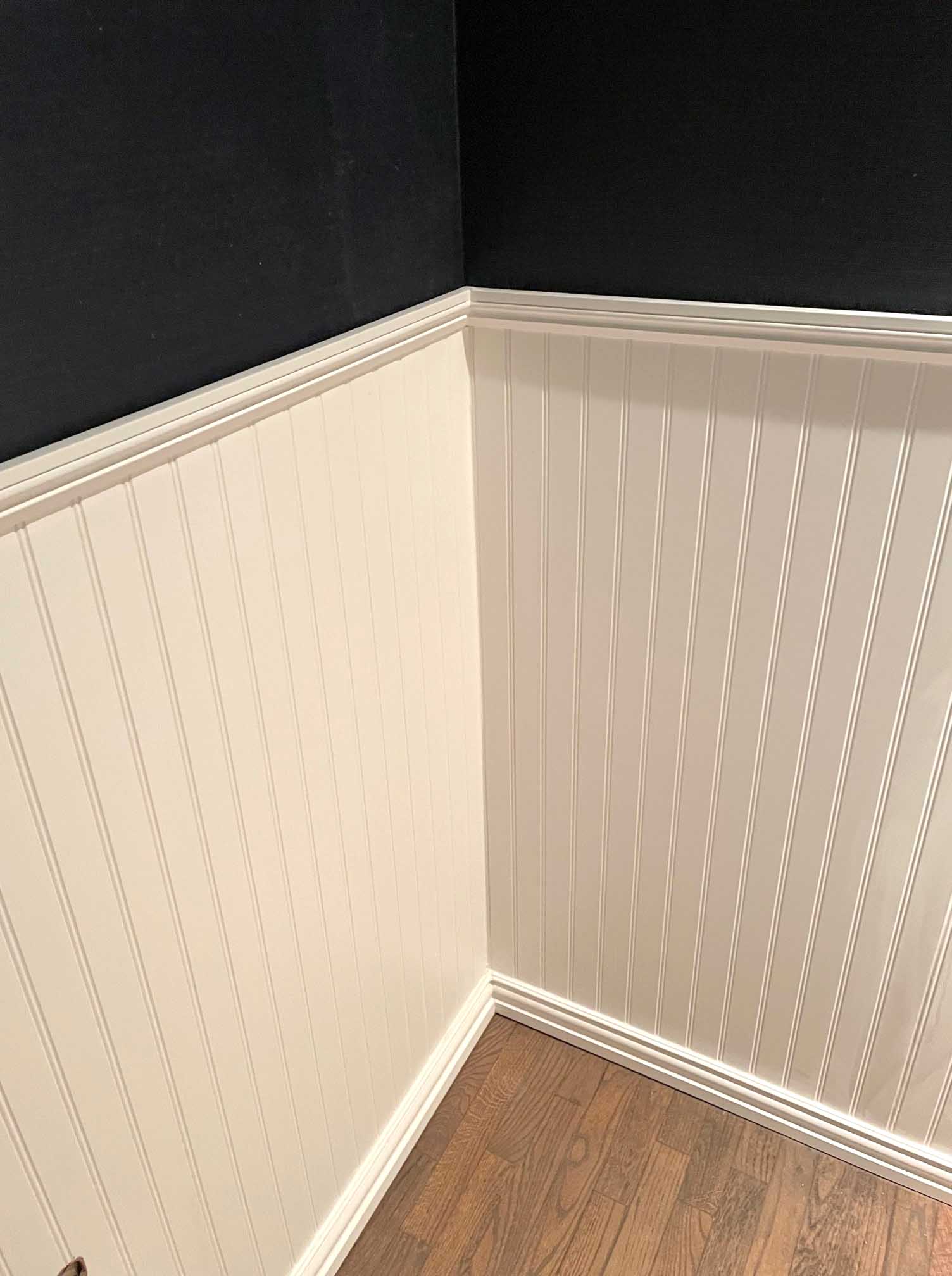 Wainscoting: panel molding with decorative purposes that lines the lower portion of a wall. One type of wainscoting is board and batten which offers a nice modern look and adds value to a plain wall or ceiling.